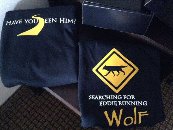 "Searching for Eddie Running Wolf " T-shirts