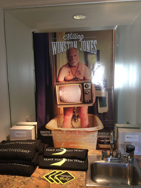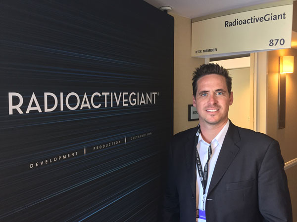 Tom Hartmann visiting the Radioactive Giant booth at American Film Market 2015