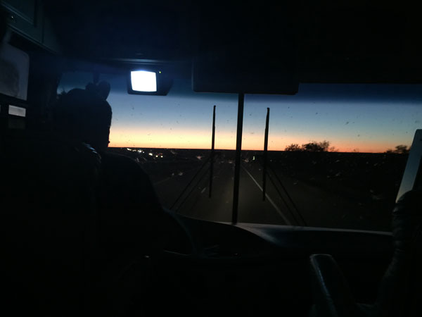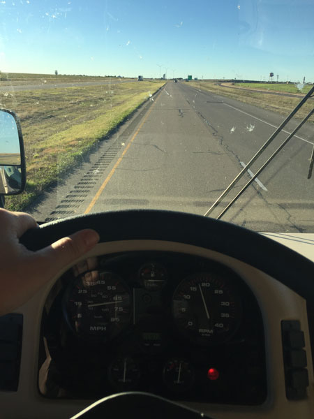 Great view of the road ahead from the co-pilot seat of the promotional tour bus