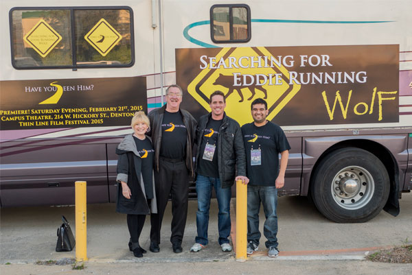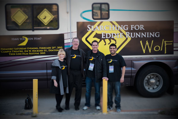 "Searching for Eddie Running Wolf " crew outside Thin Line Festival 2015