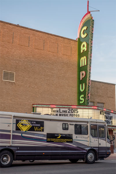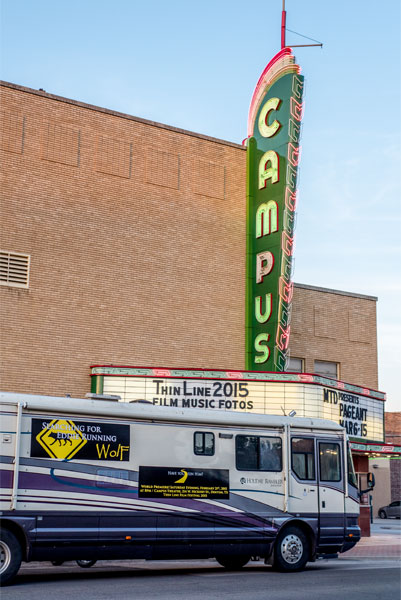 Big Bertha "Searching for Eddie Running Wolf " tour bus parked Thin Line Festival 2015